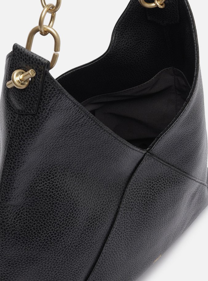 Bolsa Hobo Preta Couro Grande Recortes Metais