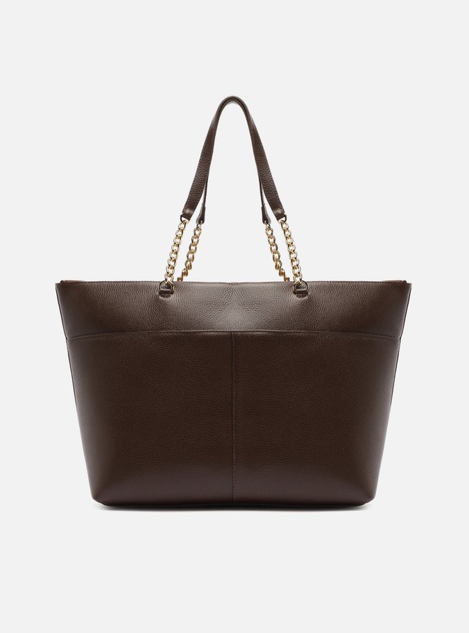 Bolsa Shopping Marrom Cacau Couro Grande Alça Corrente