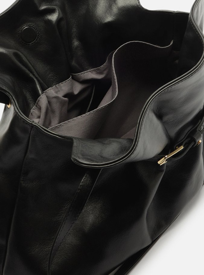 Bolsa Shopping Preta Couro Grande Tira Fivela