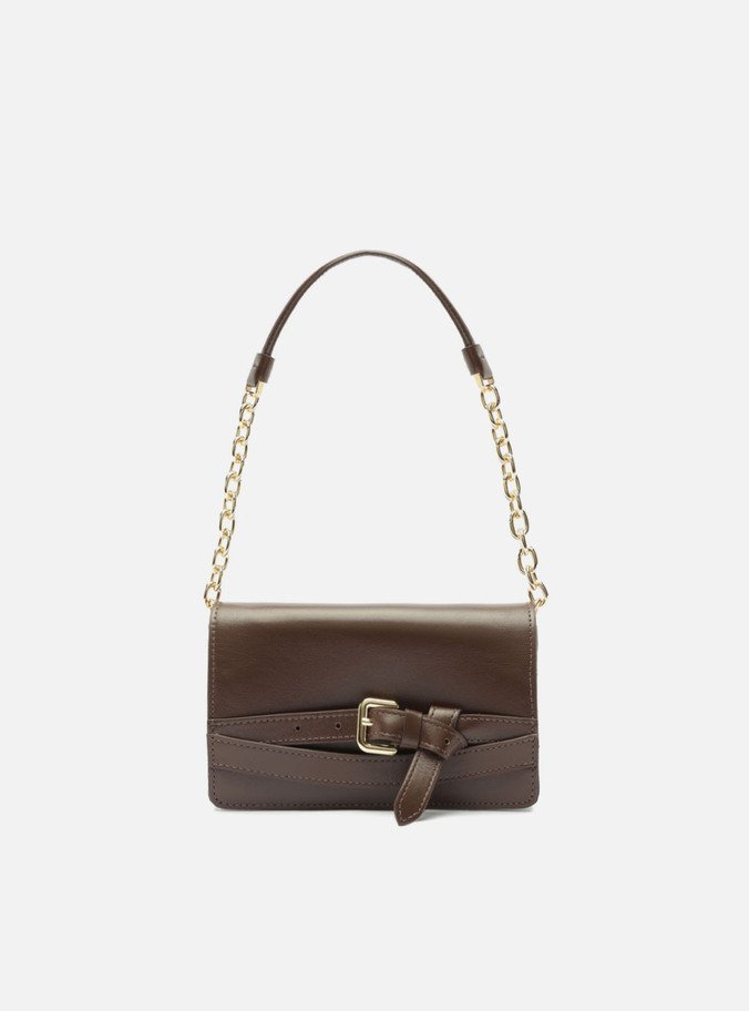 Bolsa Shoulder Marrom Couro Pequena Tiras Fivela