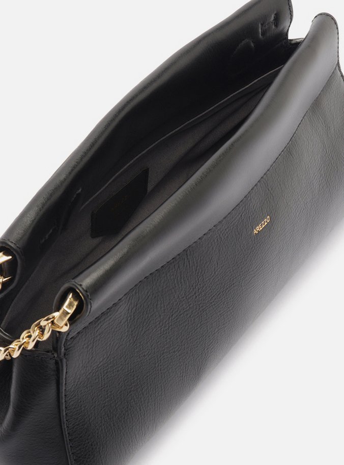 Bolsa Shoulder Preta Couro Grande Corrente Dupla