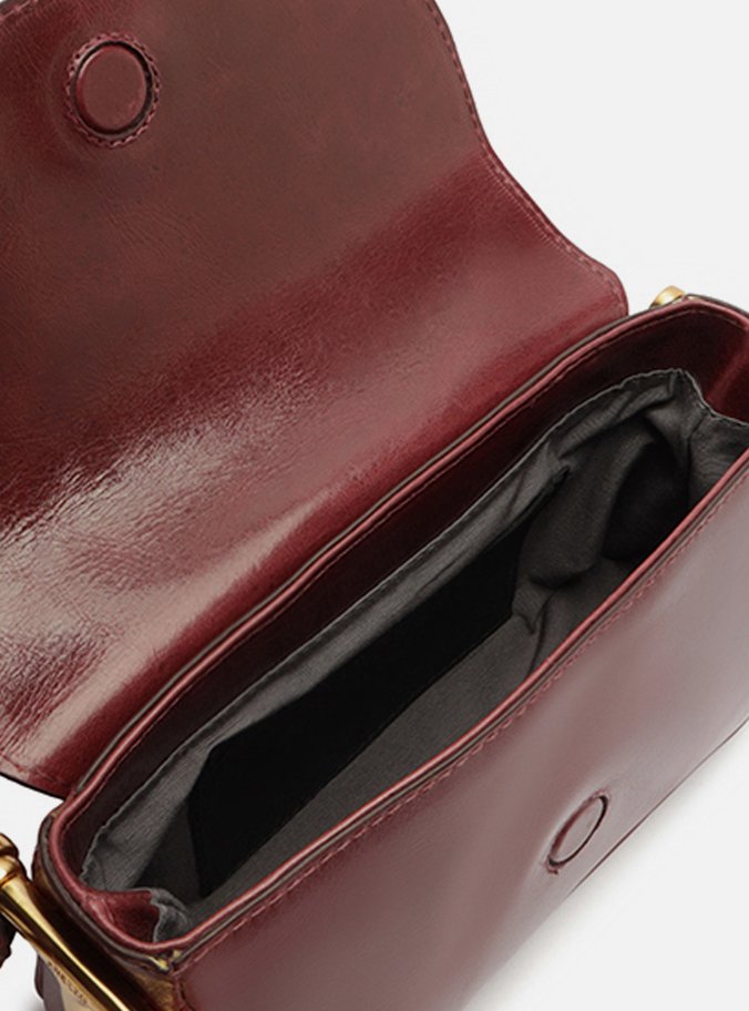 Bolsa Tiracolo Bordô Couro Pequena Metais Alça