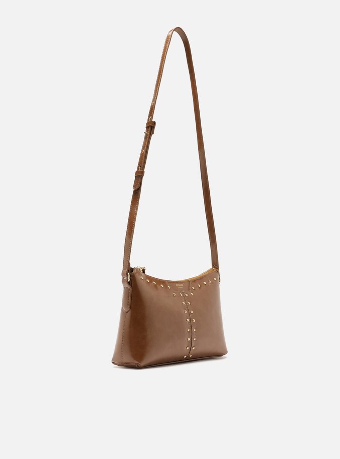 Bolsa Tiracolo Marrom Verniz Pequena Rebites
