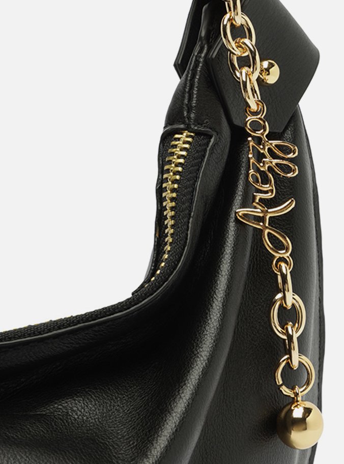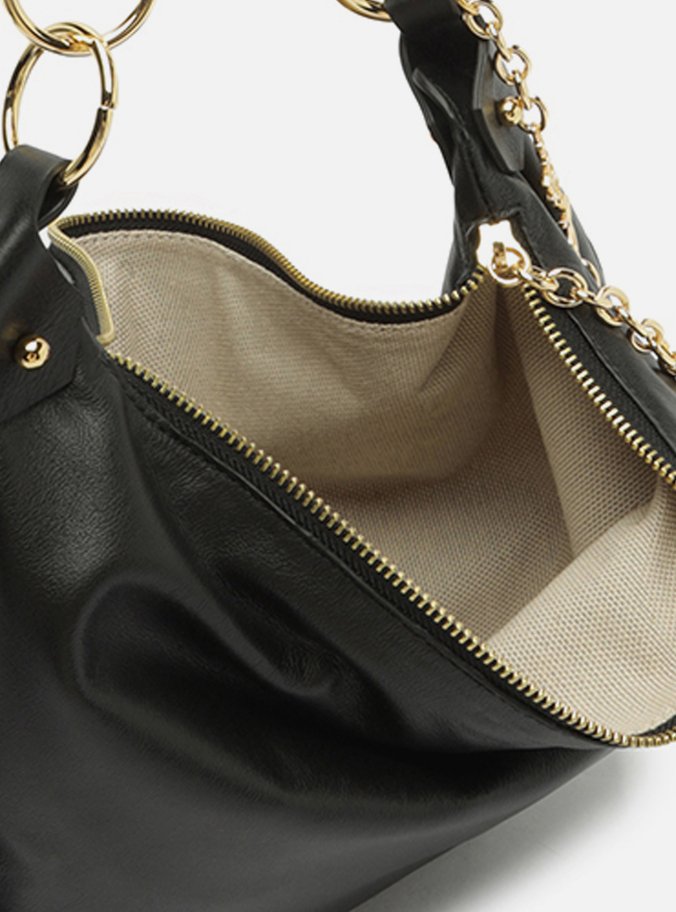 / Bolsa Tiracolo Preta Couro Média Correntes