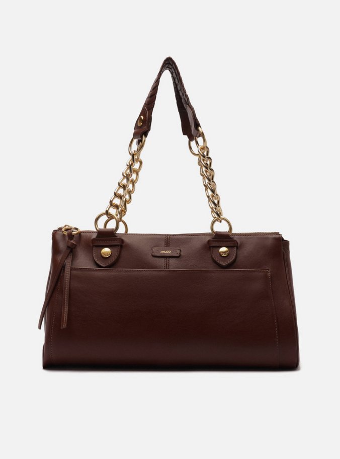 Bolsa Tote Marrom Couro Grande Alças Bolso