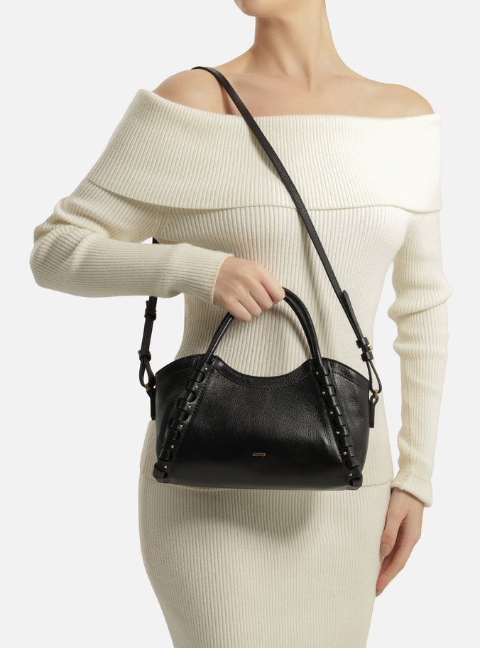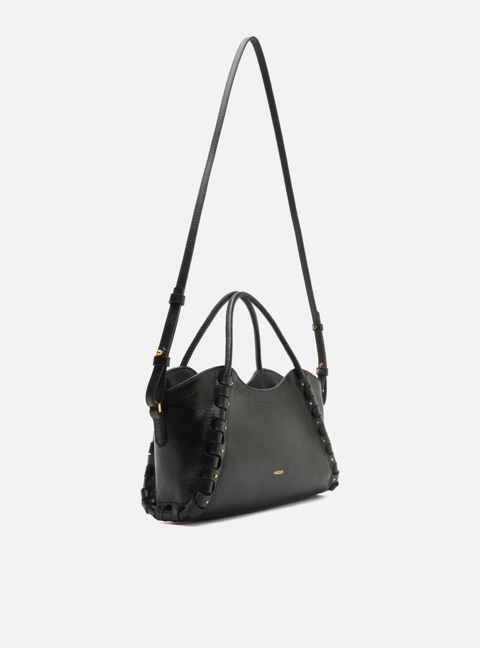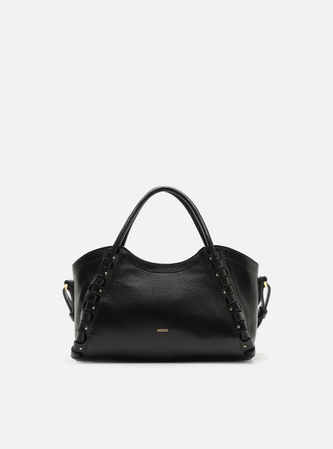 Bolsa Tote Preta Couro Média Tramado Rolotê