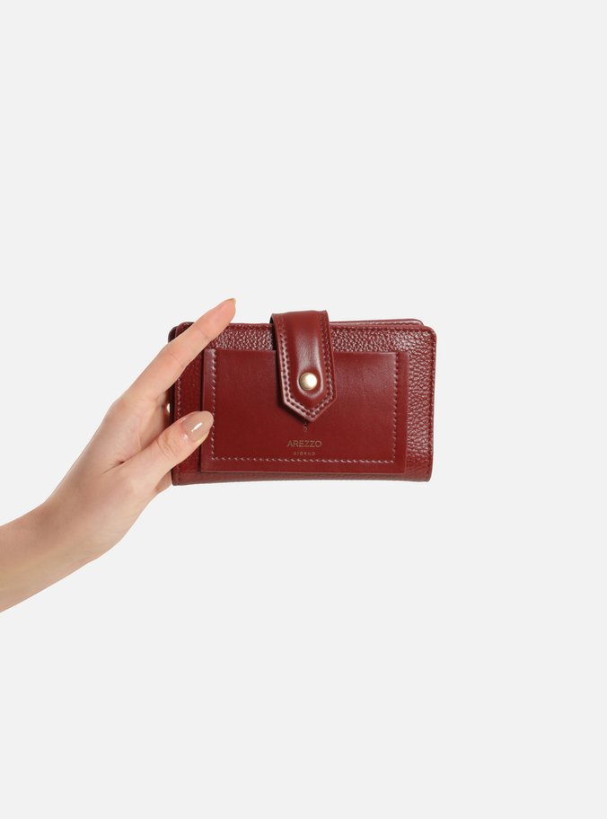 Descrição: Carteira pequena feminina vermelha com acabamento texturizado. O acessório tem formato retangular e contorno em pesponto. Com fecho em lapela e botão de pressão, além de bolso externo frontal liso com inscrição do nome da marca. Parte interna na cor da carteira com divisórias e porta-cartões.