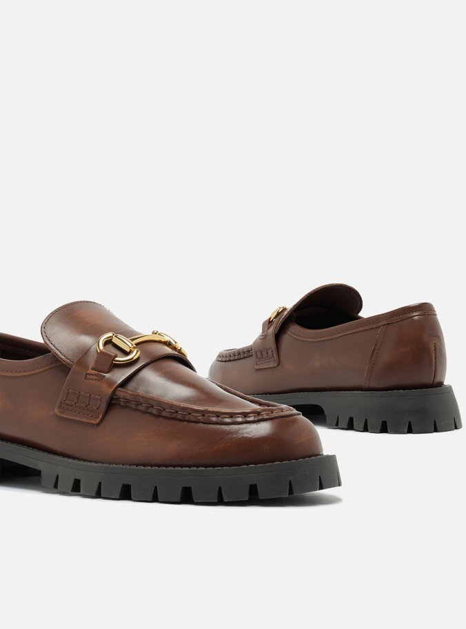 Mocassim Marrom Couro Tratorado Tira Bridão
