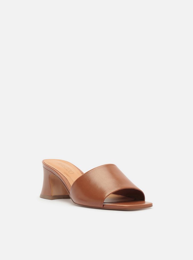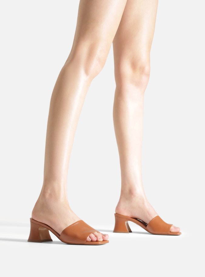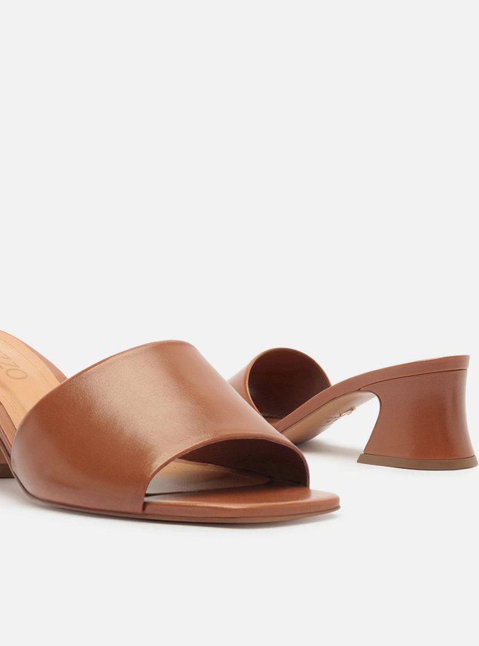 Mule Marrom Couro Salto Flare Tira Única