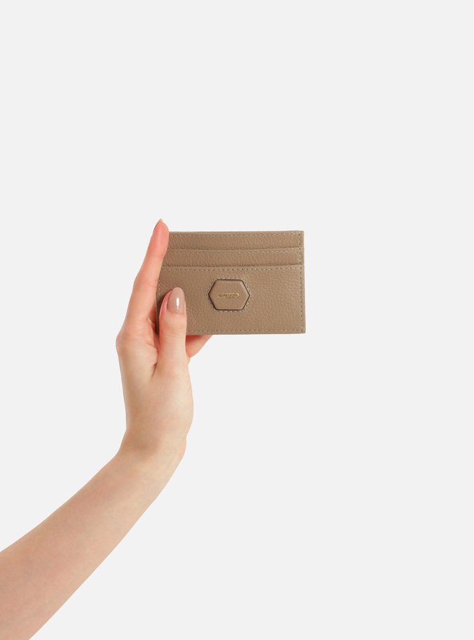 Porta-Cartões Cinza Couro Tag Hexagonal