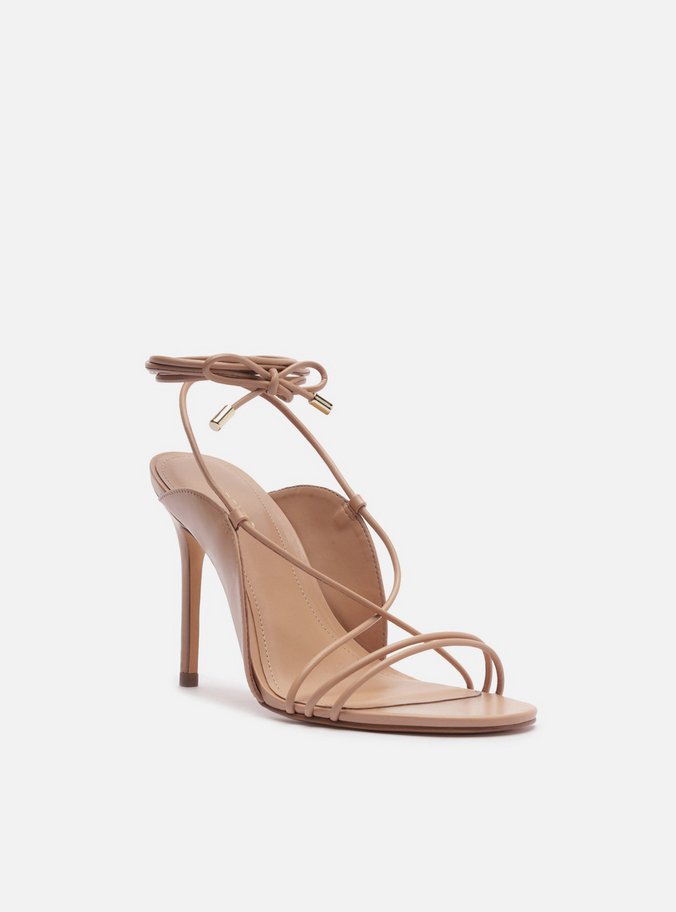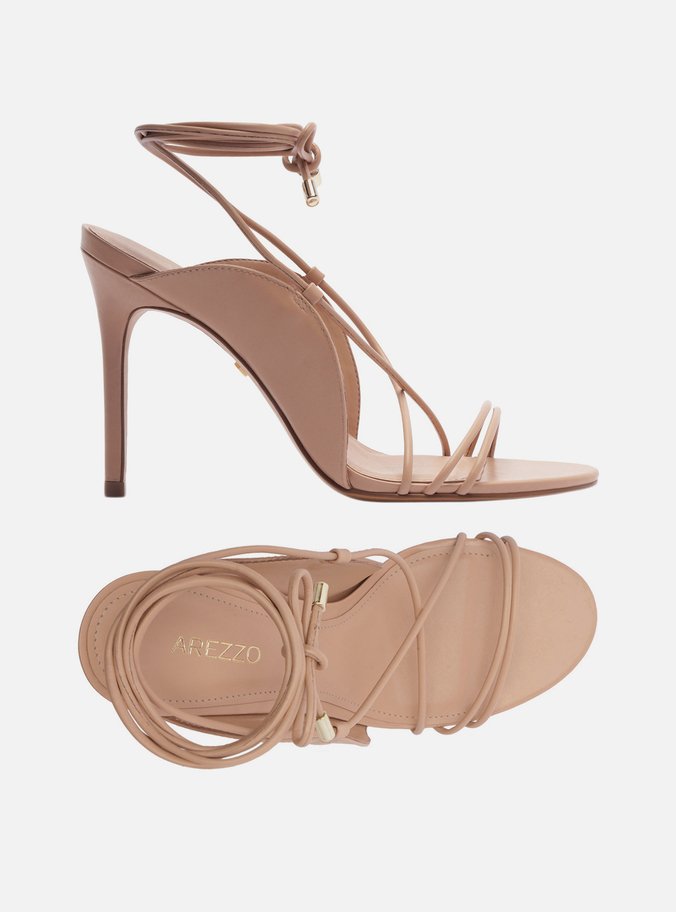 Sandália Bege Salto Alto Tiras Finas Amarração