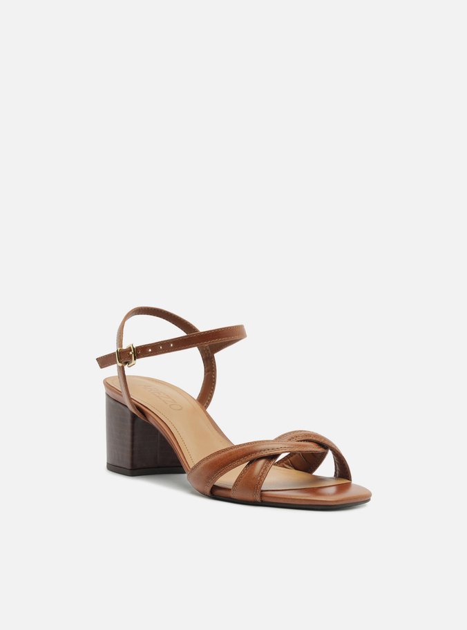 Sandália Caramelo Couro Bloco Tiras Enlace