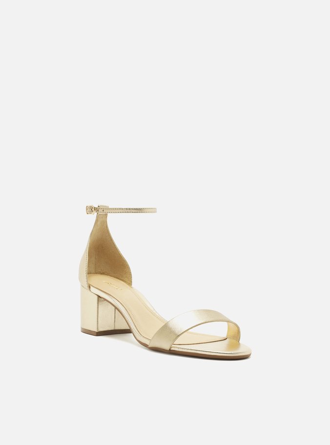 Sandália Dourada Couro Salto Médio Bloco Isabelli