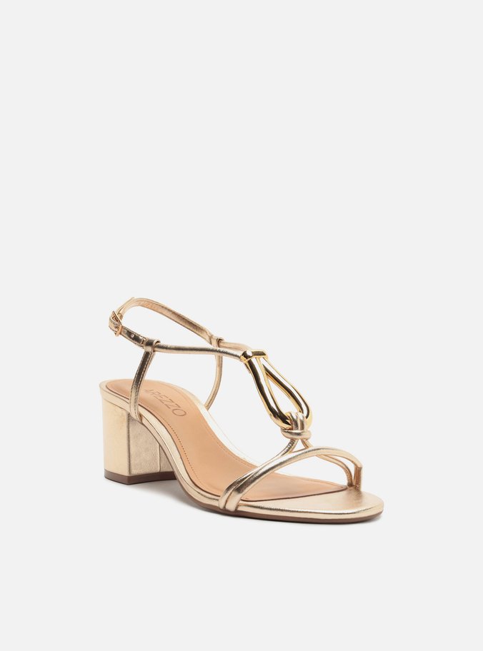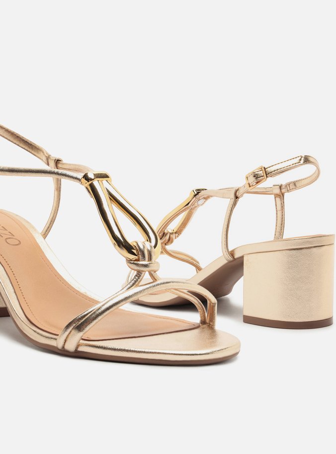 Sandália Dourada Salto Bloco Metais