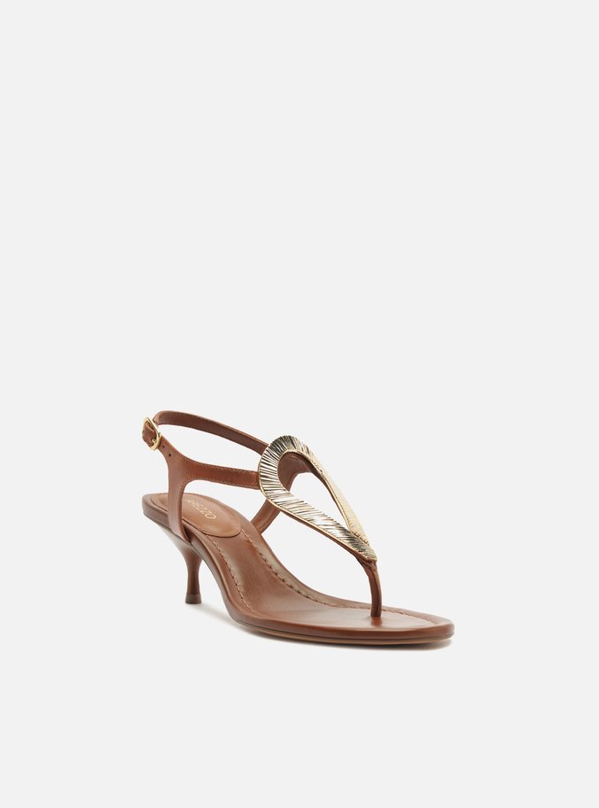 Sandália Marrom Couro Salto Kitten Metal Textura
