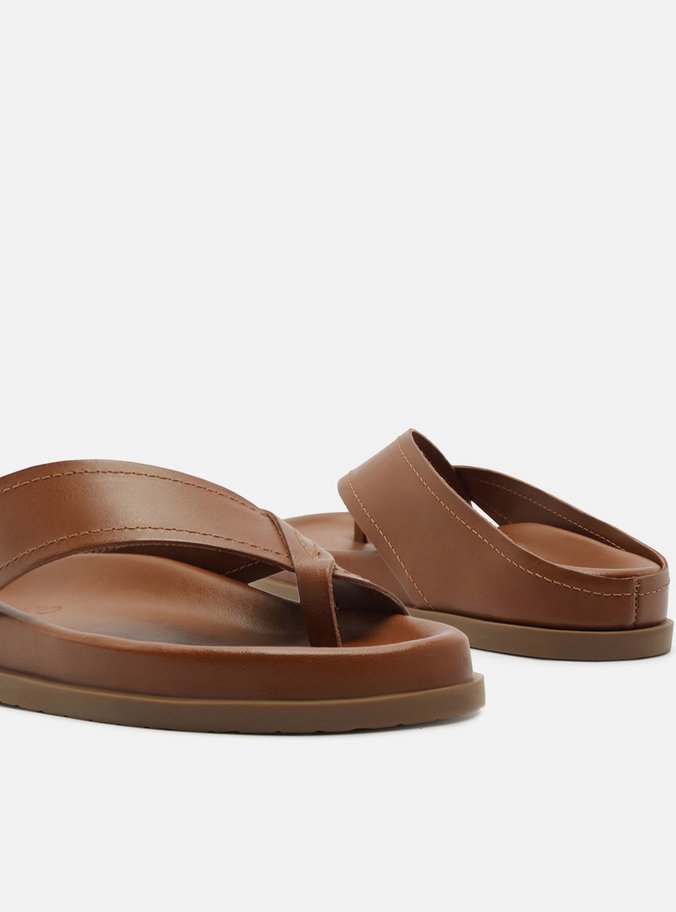 Sandália Papete Marrom Couro Tiras Largas Dedeira