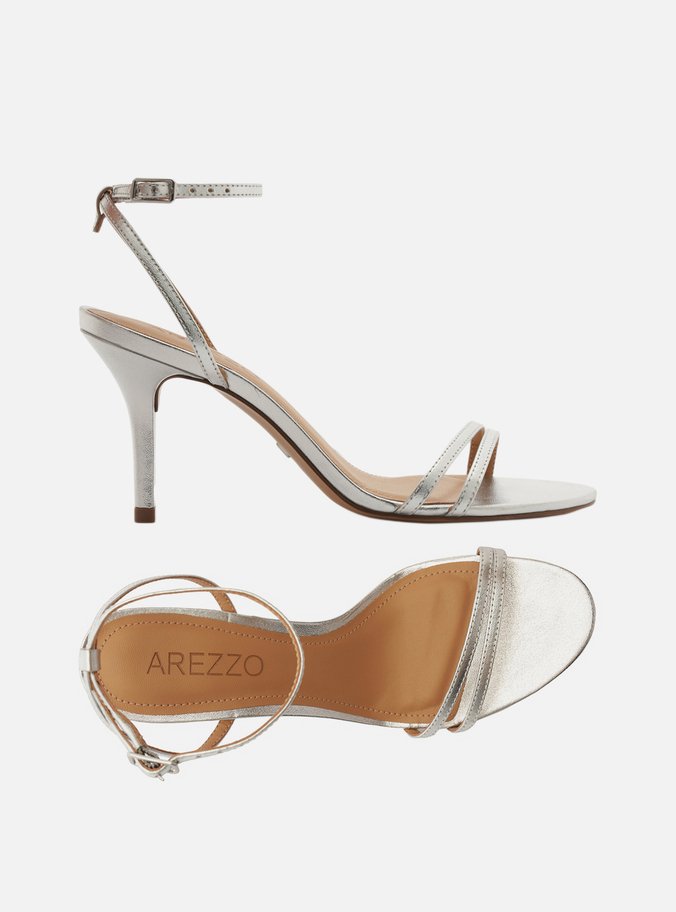 Sandália Prata Salto Fino Tiras