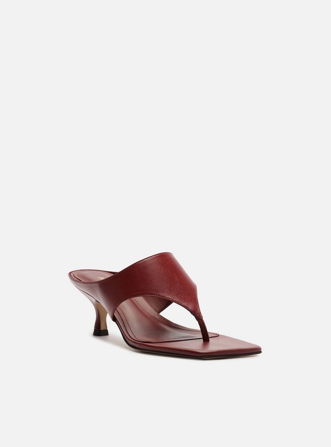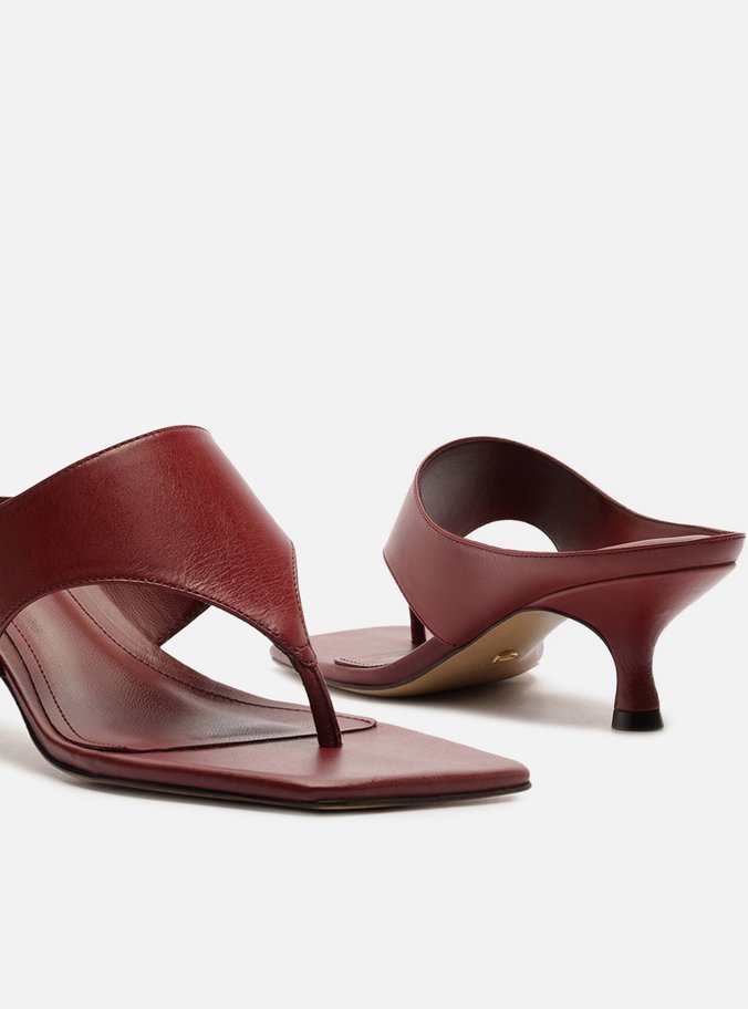 Sandália Vinho Couro Salto Kitten Tira Thong