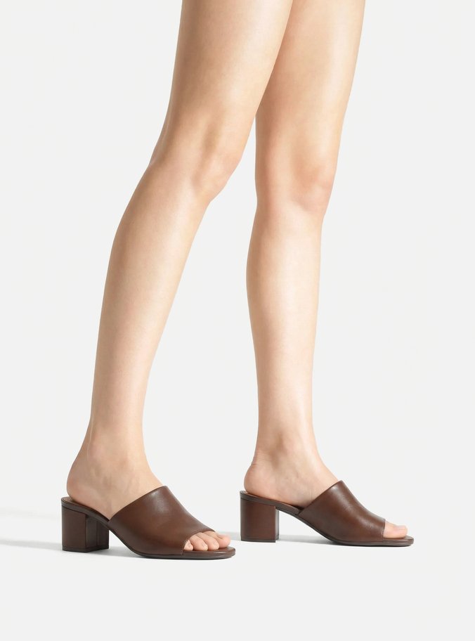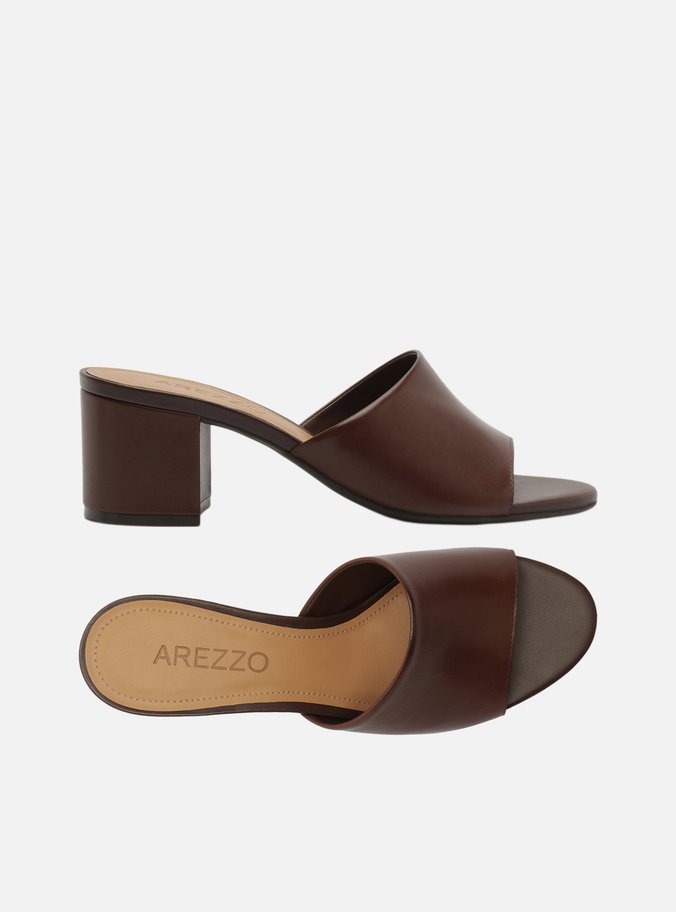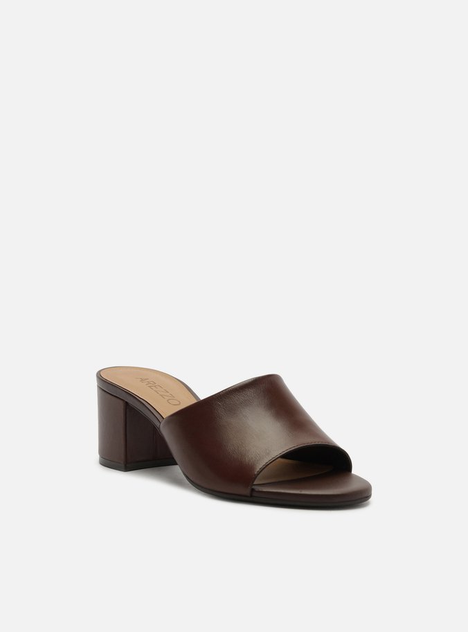 Tamanco Marrom Couro Salto Bloco Tiras
